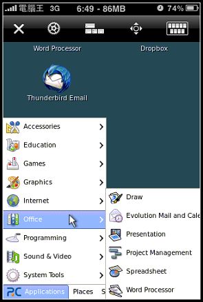 也可以放大縮小,大部分的架構與我們常見的Windows Base電腦差別不大,但是軟體大都是Linux架構常見的軟體: