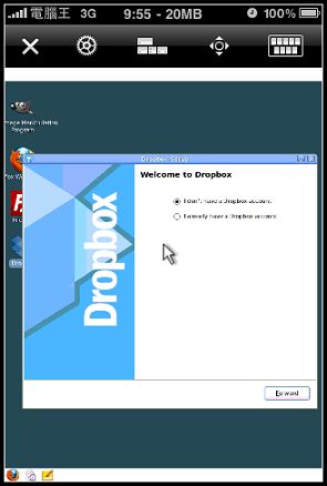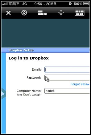 在桌面上也有Dropbox捷徑,可以輸入你自己的Dropbox帳號密碼就可以查詢或開啟Dropbox裡面的檔案,這樣就不用煩惱檔案還要上傳給AlwaysOnPC才能使用了: