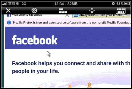 AlwaysOnPC還有一個亮點,就是他內建了一個FIREFOX瀏覽器,在iPhone中也可以開啟瀏覽: