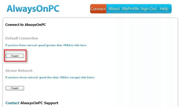 接著以你的連線速度選擇連線模式,只要不要太慢的網路速度的話就使用Default Connect就可以了: