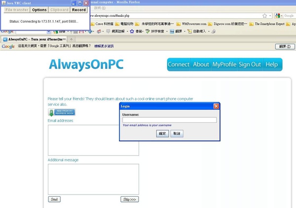 接著就可以在其他人的電腦上面操控我們的AlwaysOnPC了: