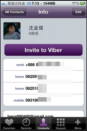 別人也可以用viber打給我,不過就是沒有在contacts裡面出現 ...