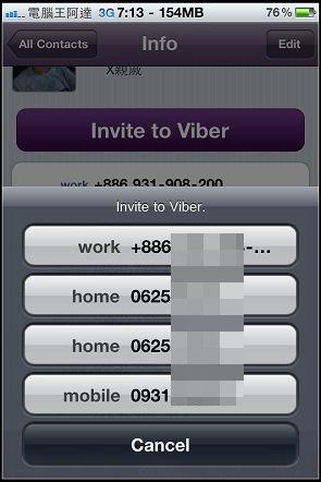 別人也可以用viber打給我,不過就是沒有在contacts裡面出現viber的icon,