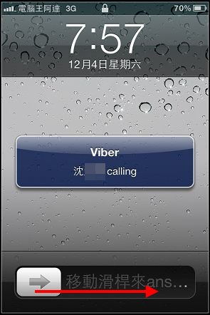 「Viber」最神奇的另外一點就是就算是待機狀態或沒有執行Viber軟體介面中都可以接聽Viber網路電話都是免費的:
