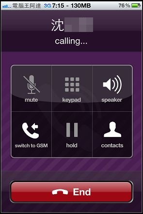 他撥打同是有裝VIBER的朋友是免費(IP CALL),