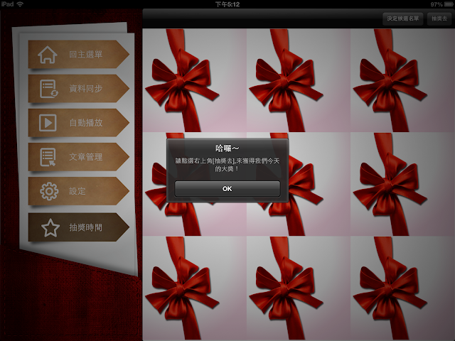 而我們的成果都上傳到了雲端伺服器上,所以第一個動作就是利用資料同步,把成果給下載回來到要播放的iPad上,即使你不小心忘記帶了原本要播放的iPad,只要找到另外一台來使用,也可以馬上就上場作戰囉,雲端真是方便的啦