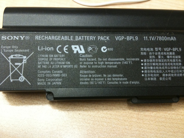 3. Sony VGP-BPL9,VAIO SZ 用大電池一顆,狀況還很好,可以用三小時以上(Stamina mode)  $2000