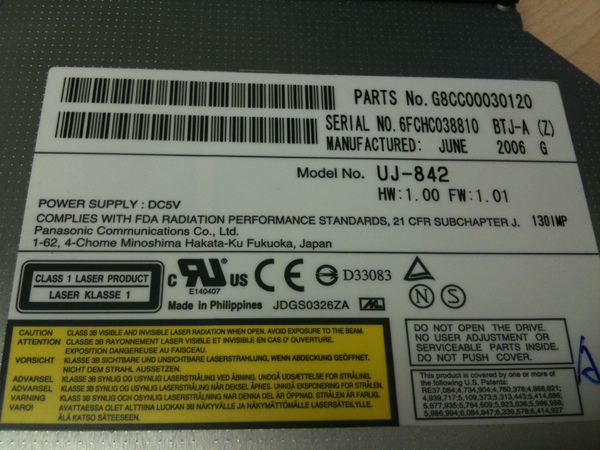 5. NB用DVD燒錄器機芯UJ842, 燒綠片數少於10片。$1800 (spec: http://goods.ruten.com.tw/item/show?11070303668972)