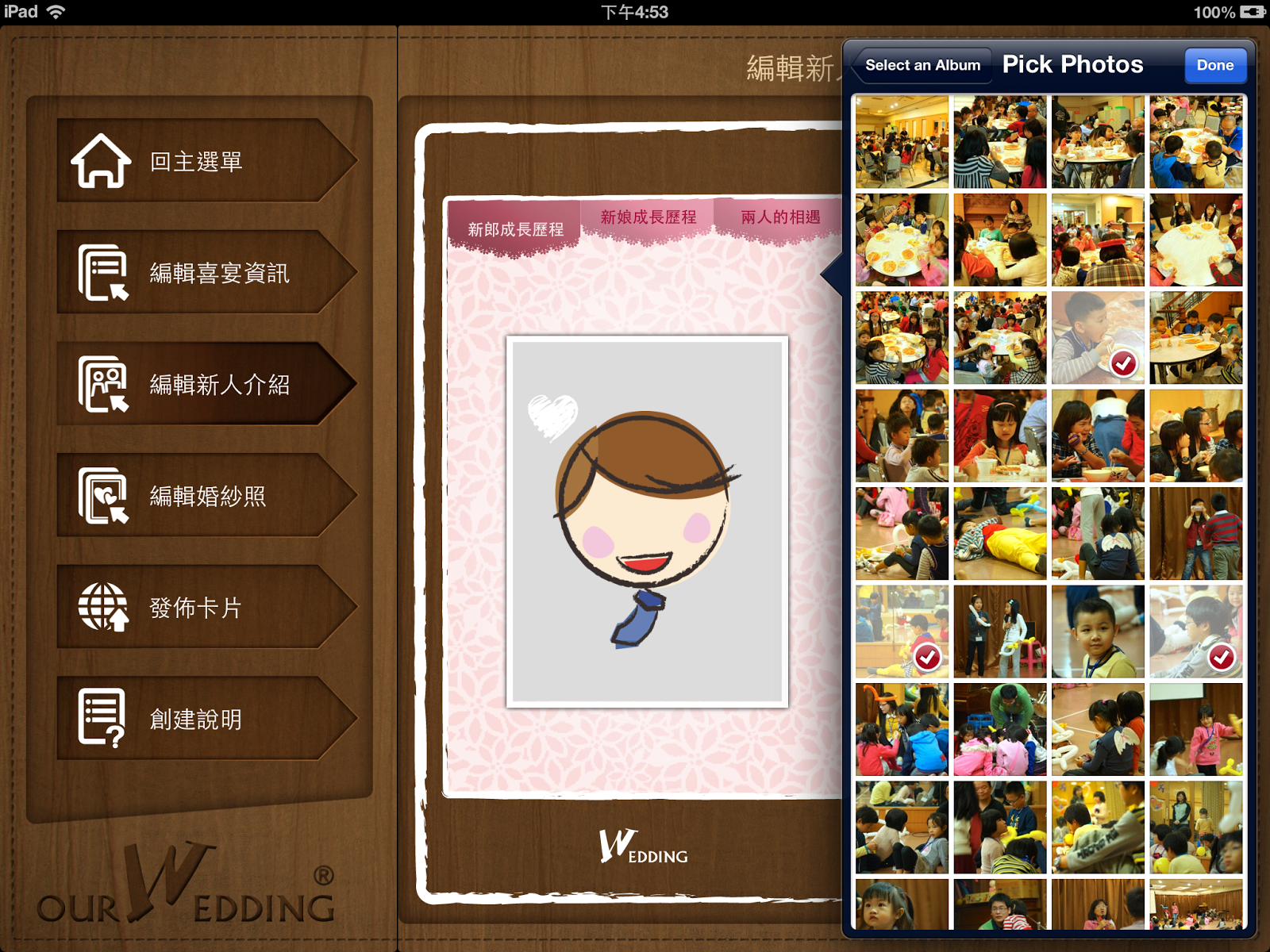 我們要從這裡先建立新人的資料,包括婚宴地點、婚紗照片等。