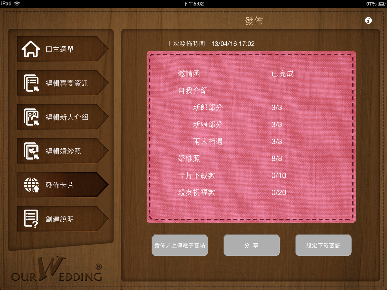 發佈完之後,就可以分享電子喜帖給親朋好友囉