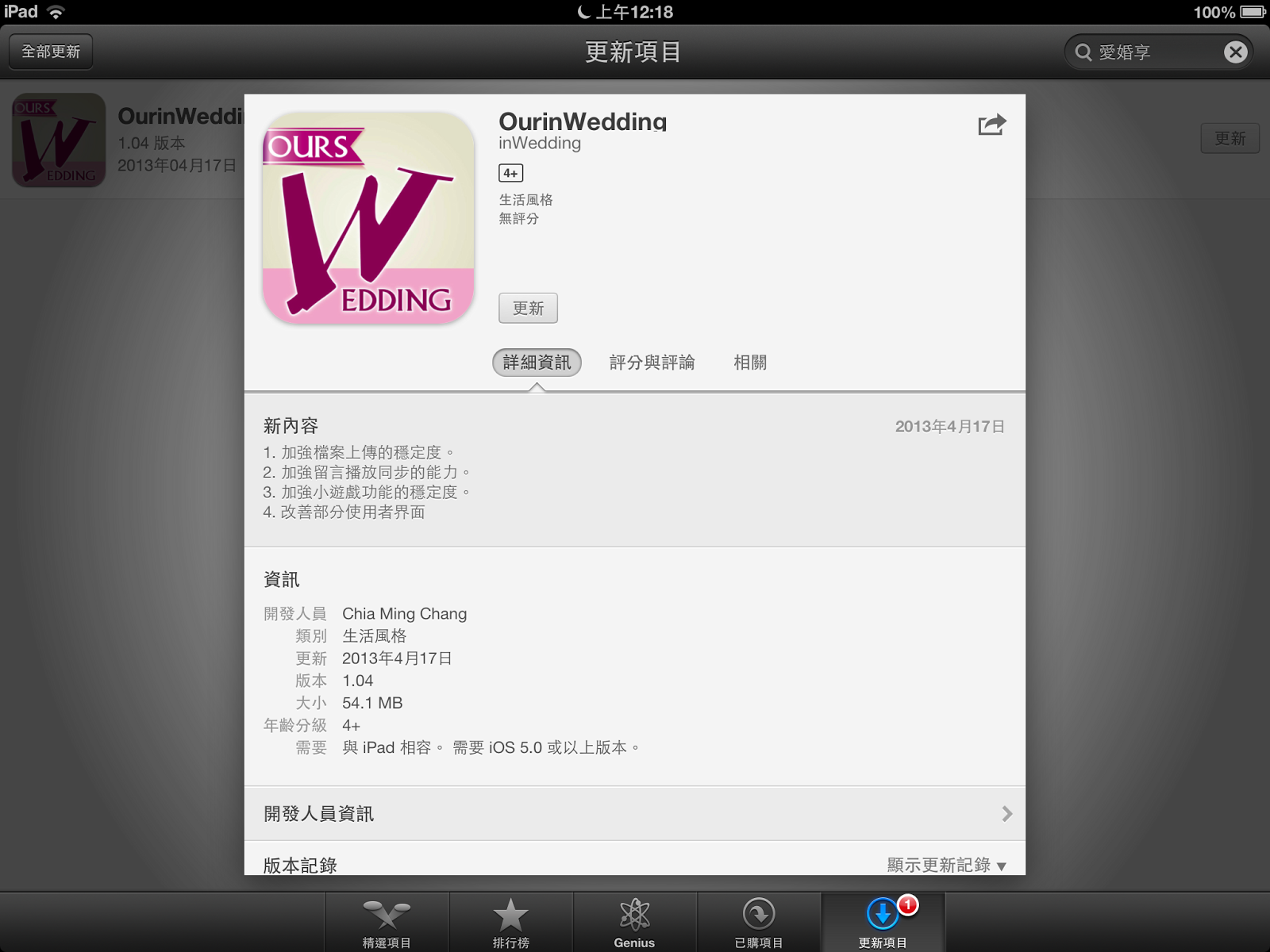 軟體名稱叫做「愛婚享」,這個沒有在App Store上架,直接由他們的連結下載App到你的裝置上觀看(跳過App Store的手續,達到每個人不同的客制化要求)